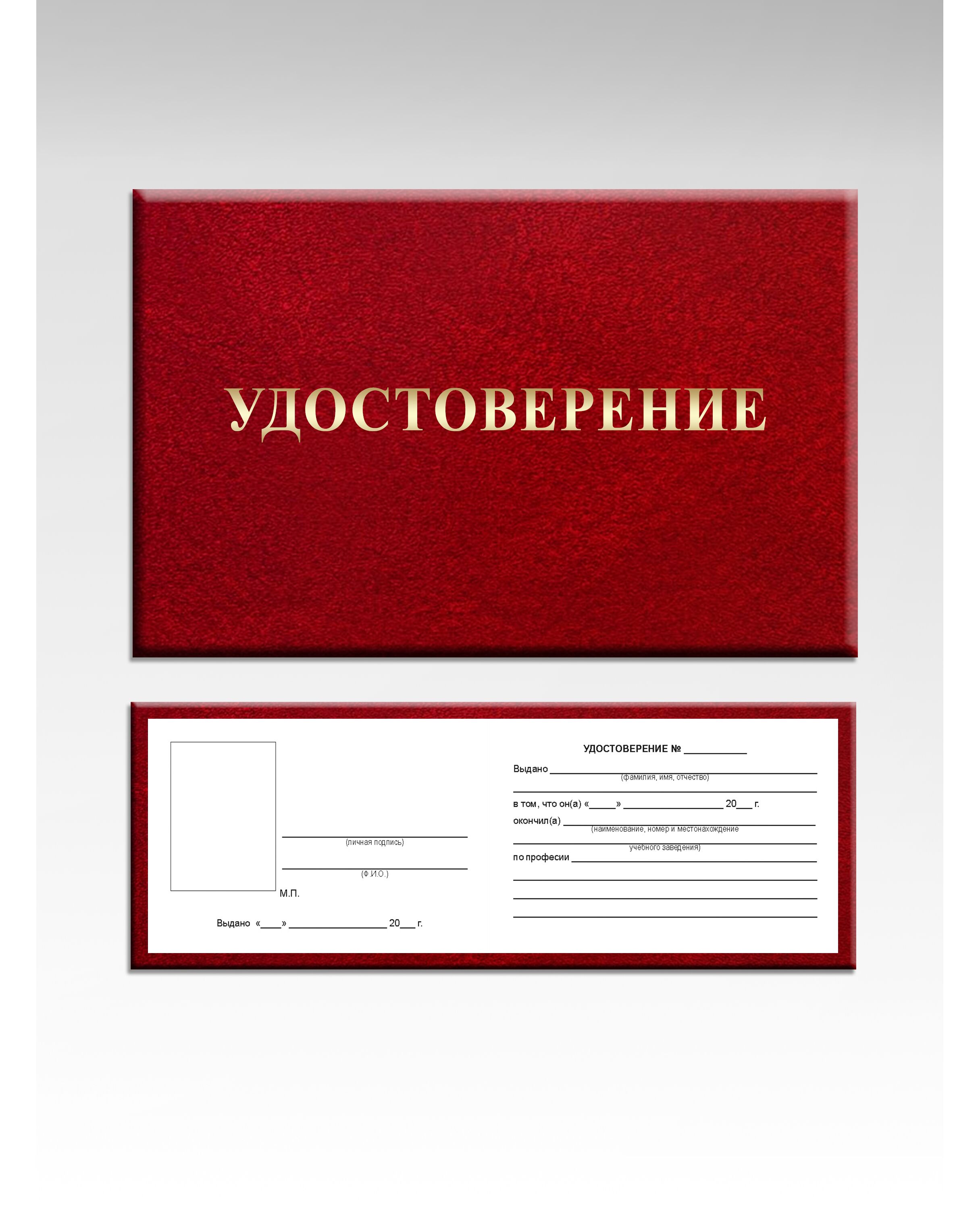 Обложка удостоверения получается выпуклой, мягкой. Печать вклеек в один цвет.