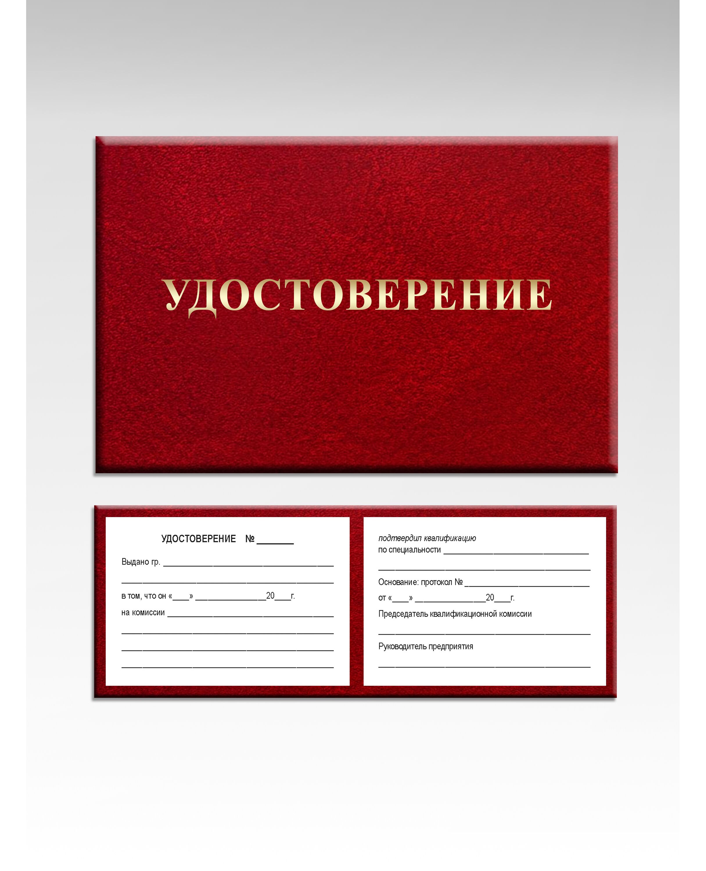 Удостоверение о подтверждении квалификации (цвет бордо, твердая корочка с мягкой подложкой)