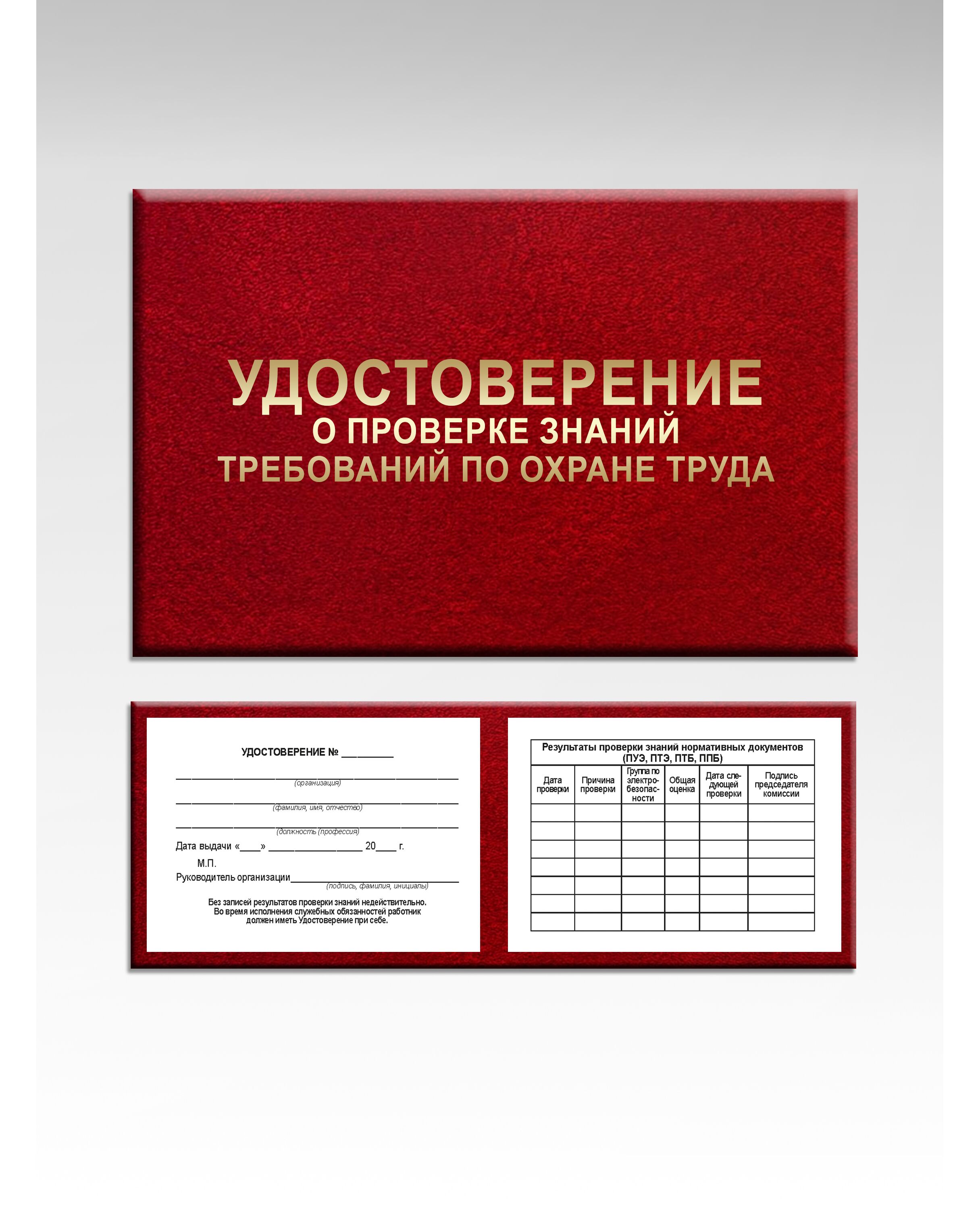 Удостоверение о проверке знаний нормативных документов (цвет бордо, твердая корочка с тиснением с мягкой подложкой)
