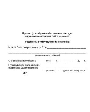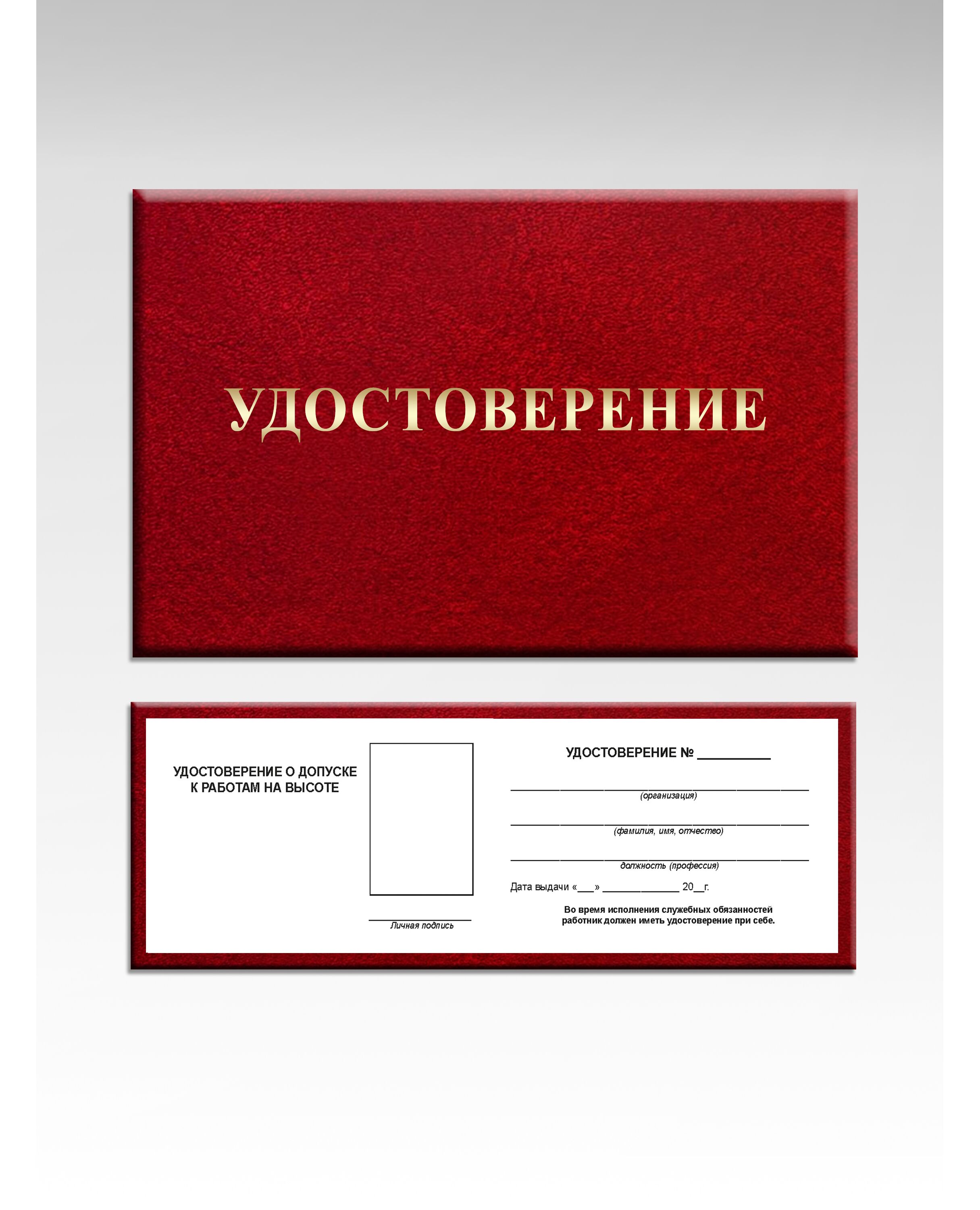 Форма Удостоверения, для удобства пользования, не много отличается от рекомендованной, указанной в Пр.№ 782н Правила по охране труда при работе на высоте.