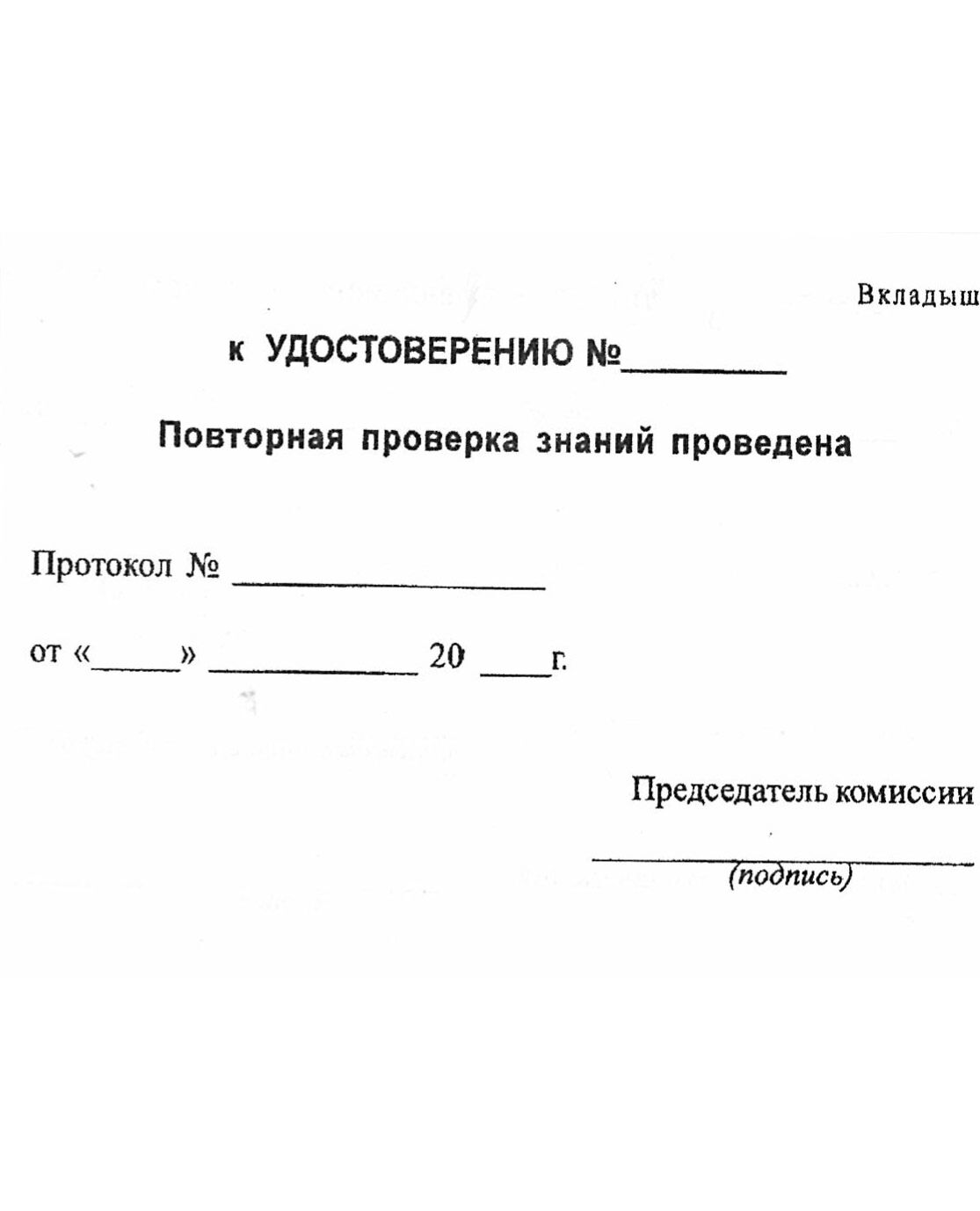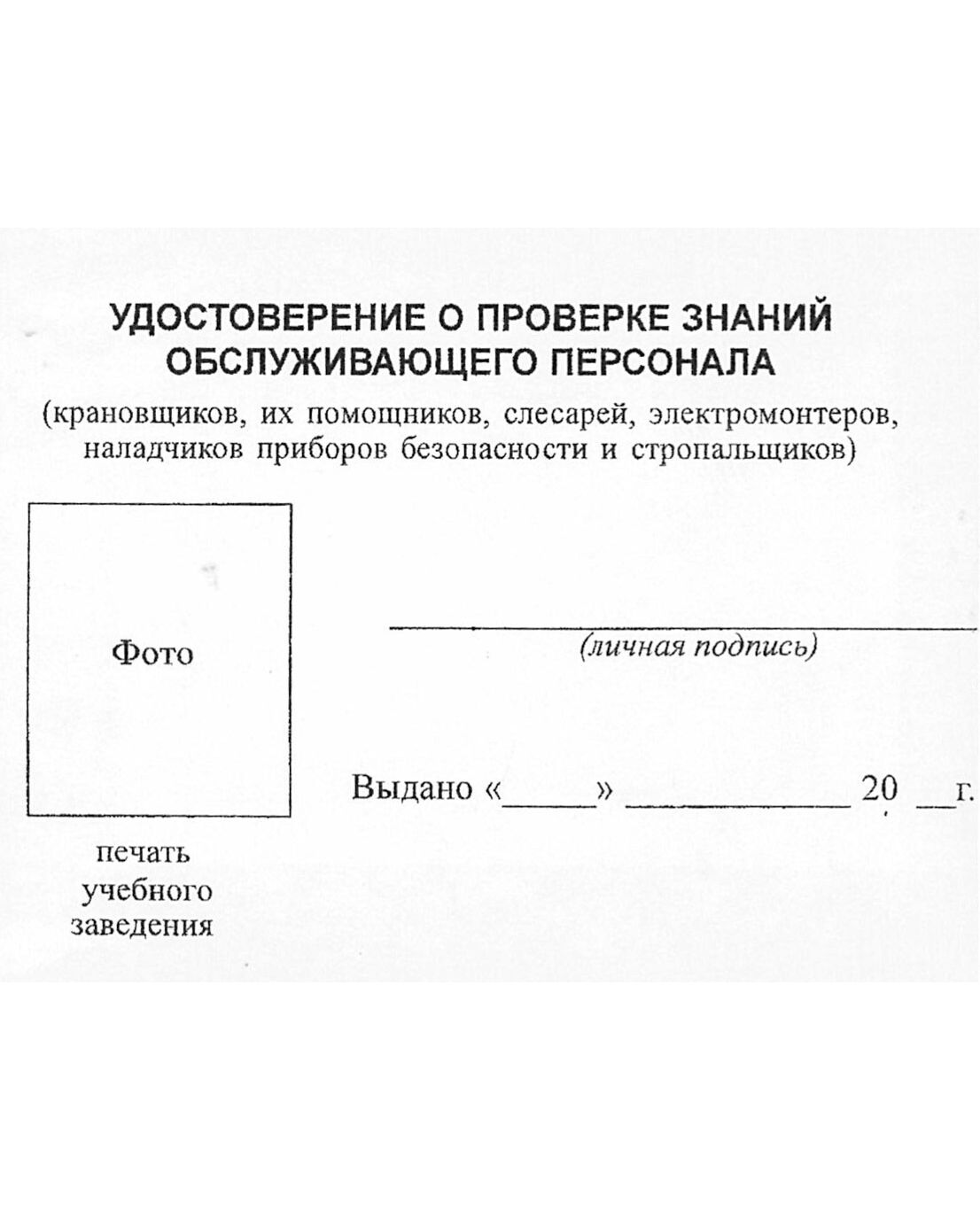 Удостоверение о проверке знаний обслуживающего персонала (крановщиков, их помощников, слесарей, электромонтеров, наладчиков приборов безопасности и стропальщиков). Утверждено Постановлением Госгортехнадзора РФ от 20.11.1997 № 44 в редакции от 28.10.2008 г.