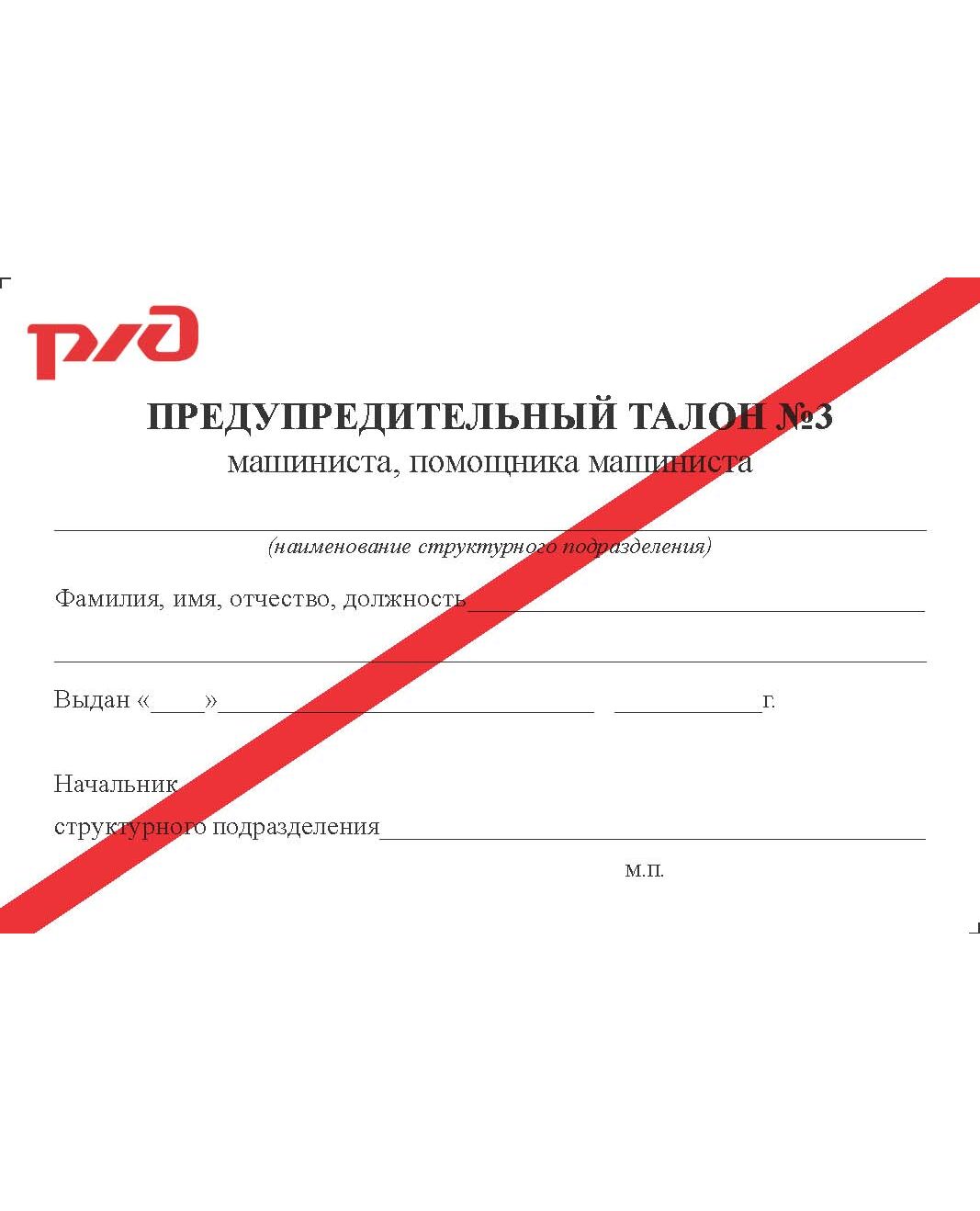 Предупредительный талон № 3 выдается машинисту (помощнику машиниста) СПС в случае принятия решения в соответствии с Порядком о лишении предупредительного талона № 2.