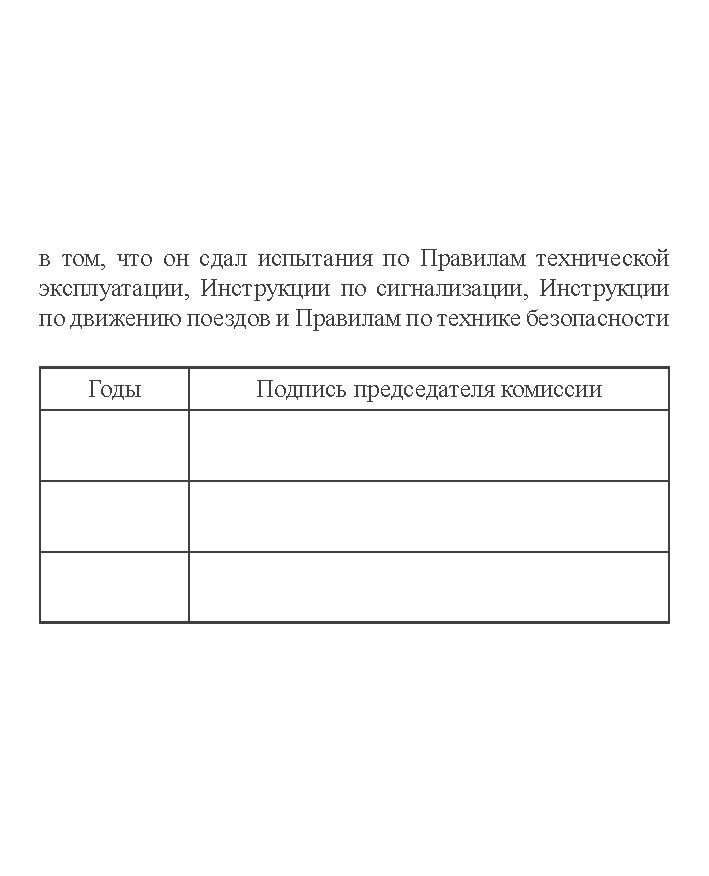 Удостоверение сдачи испытания по Правилам технической эксплуатации, Инструкции по сигнализации, Инструкции по движению поездов и Правилам по технике безопасности. Форма РБУ-9. Утверждена МПС России